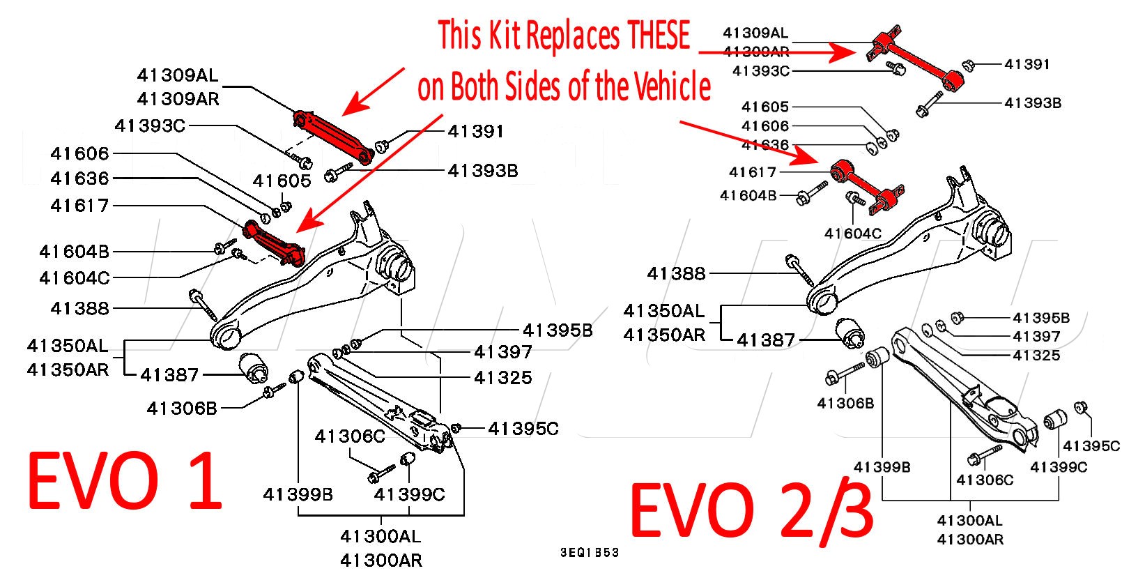 Replaces Mitsubishi Part Numbers MR197603 x 2 MR197604 x 2 EVO 2/3 MB910841 MB910842 MB910366 MB910367 EVO 1