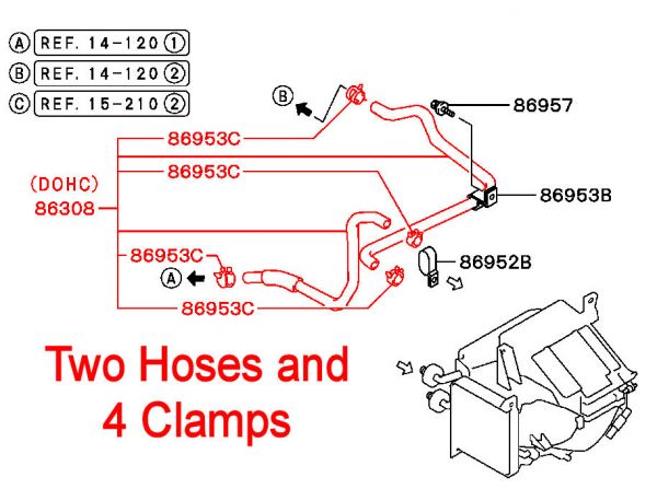 Heater Hose Kit Matrix to Engine - Mitsubishi Lancer EVO 1 2 3 CD9A CE9A