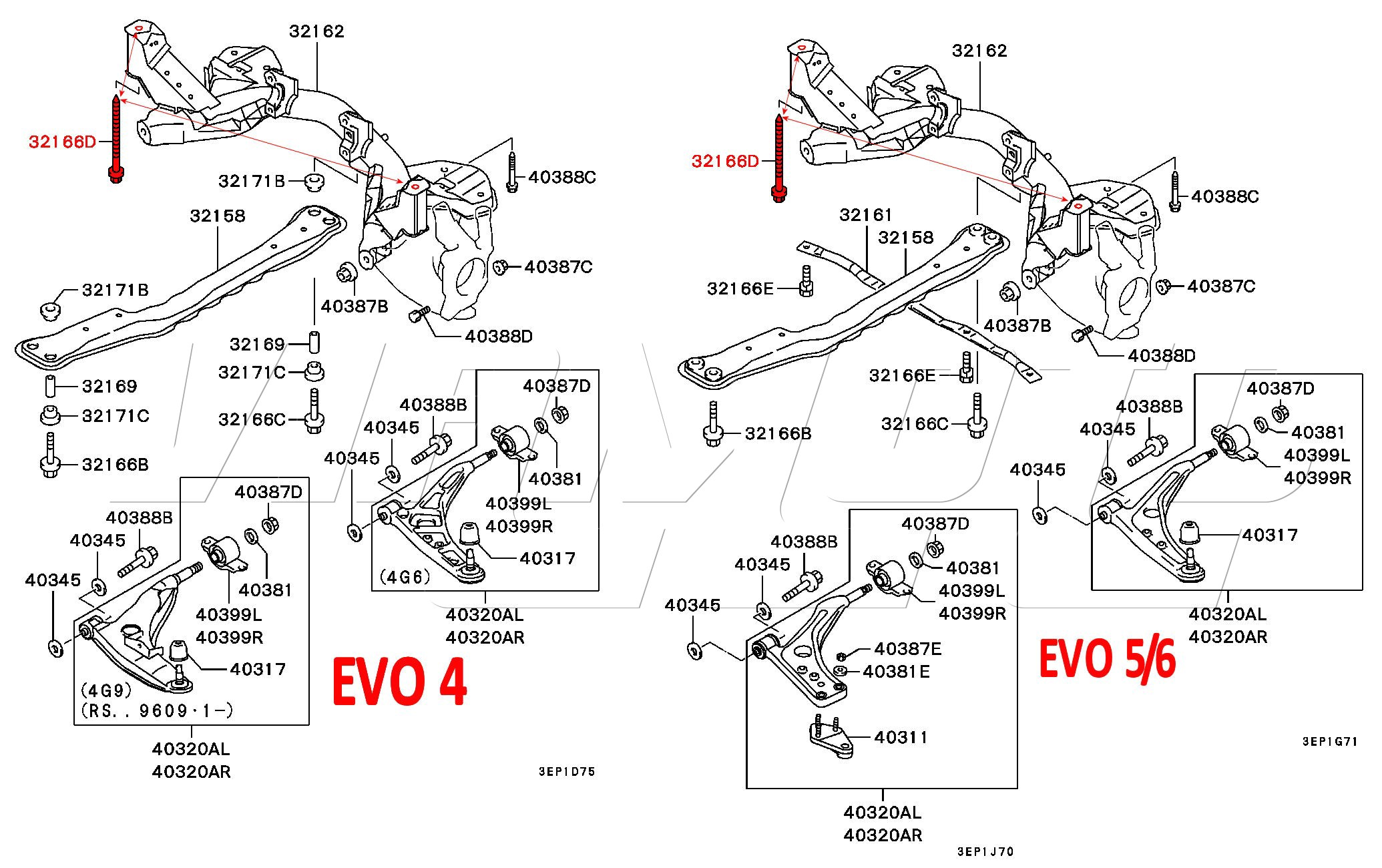 Bolt Front Subframe/Crossmember to Body - Mitsubishi Lancer EVO 4 5 6 CN9A CP9A