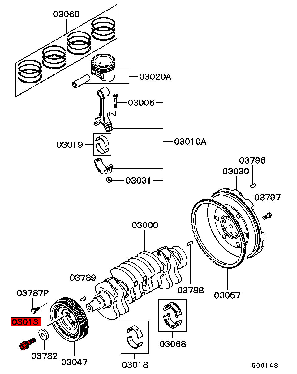 Bolt - Crank Pulley to Crank - Mitsubishi Lancer EVO I CD9A Exploded Diagram HERE Mitsubishi Part Number 1101A022 was MD138069 MD074255 MD095201 MD131259