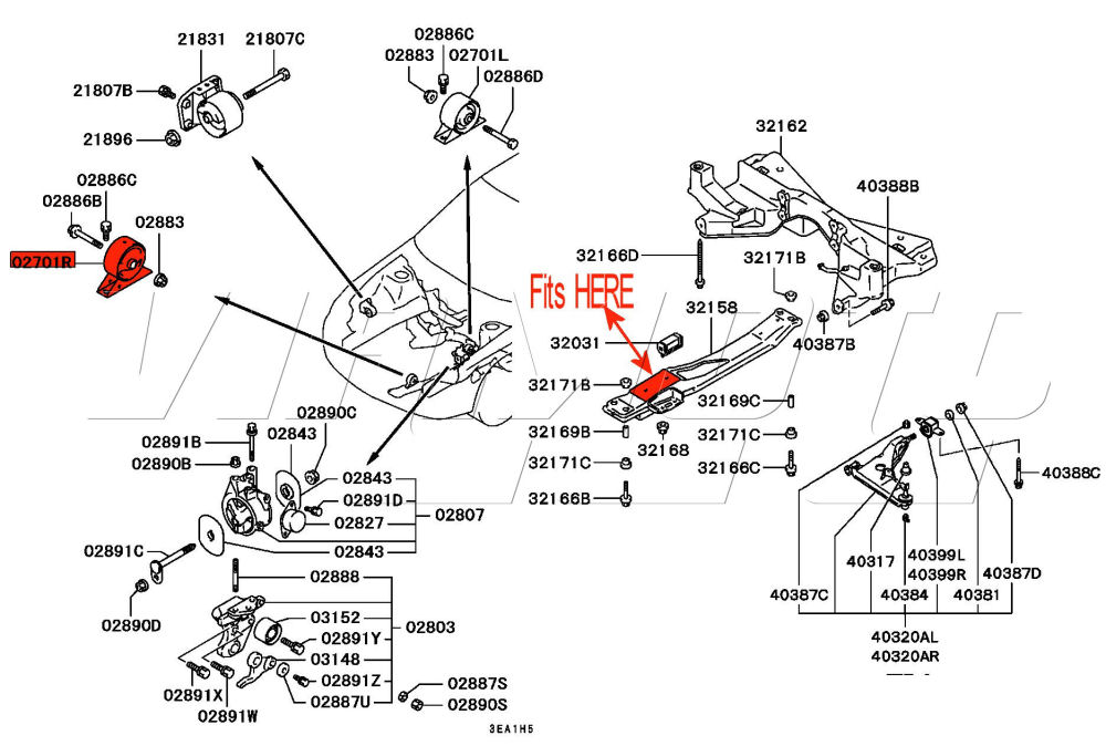 Front Engine Mount - Engine Roll Stop - Mitsubishi Lancer Evolution 1 CD9A The one that sits at the front on the engine cradle If the engine rocks front to rear this is one of 2 mounts that may need changing. See Exploded Diagram HERE Mitsubishi Part Number MR103554