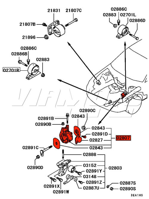 Lefthand Engine Mount - Mitsubishi Lancer Evolution I CD9A Exploded Diagram HERE Mitsubishi Part Number MB911718