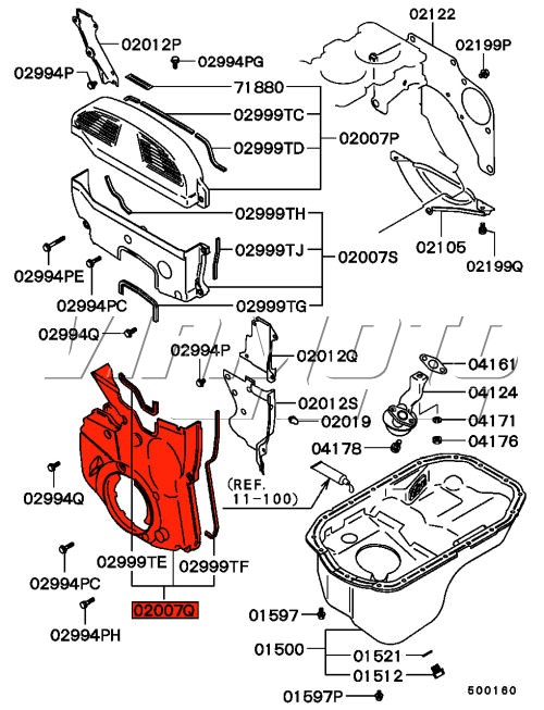 Lower Cambelt Cover - Lower Timing Belt Cover - Mitsubishi Lancer Evolution II / III CE9A Exploded Diagram HERE Mitsubishi Part Number MD332865 MD193337