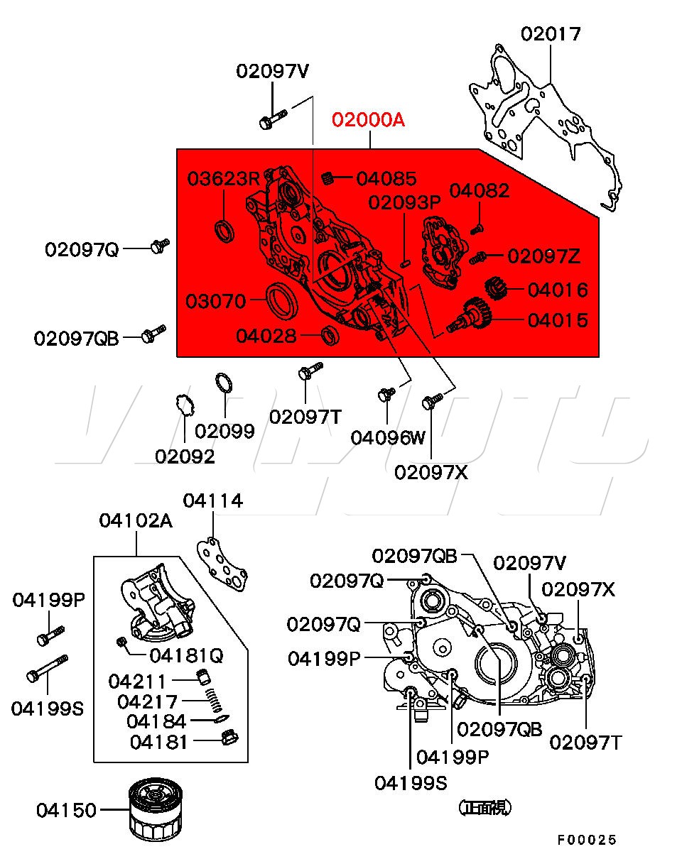 Oil Pump - Mitsubishi Airtrek 2.0 Turbo-R 4WD CU2W Oil pump or Case Assembly Cylinder Block as Mitsubishi call it Not a cheap part but if you need one you need one ! Exploded Diagram HERE Mitsubishi Part Number MD366260 MD322509