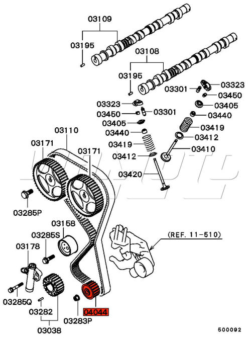 Bottom Toothed Oil Pump Sprocket - Oil Pump Drive Sprocket Mitsubishi Lancer Evolution I CD9A If this item shows any wear whatsoever then change it. Exploded Diagram Showing Location HERE Mitsubishi Part Number MD135005 MD124762