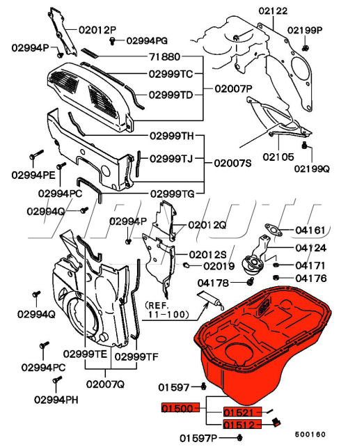 Oil Sump Pan - Mitsubishi Lancer Evolution II / III CE9A Prone to corrosion and damage from road debris. Comes complete with sump plug and washer. Exploded Diagram HERE Mitsubishi Part Number MD332043 MD305487