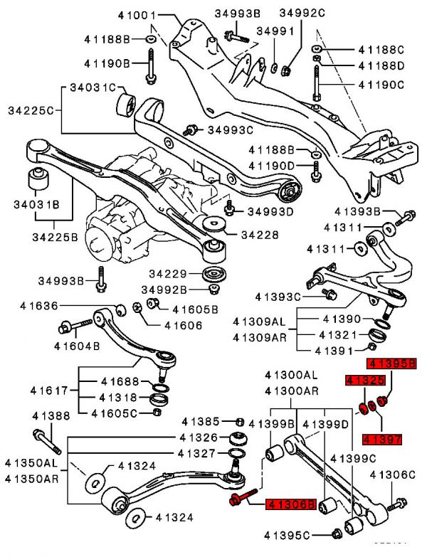Rear Bottom Control Arm Inner Camber Adjustable Bolt Kit - Mitsubishi Lancer EVO 4 CN9A Complete Bolt Kit comprising Camber Bolt, Offset Washer, Spring Washer and Nut Mitsubishi Part Number MB856459 x 1 MB809338 or MR171026 or MR333376 x 1 MS450044 x 1 MF430123 now MU430003 x 1