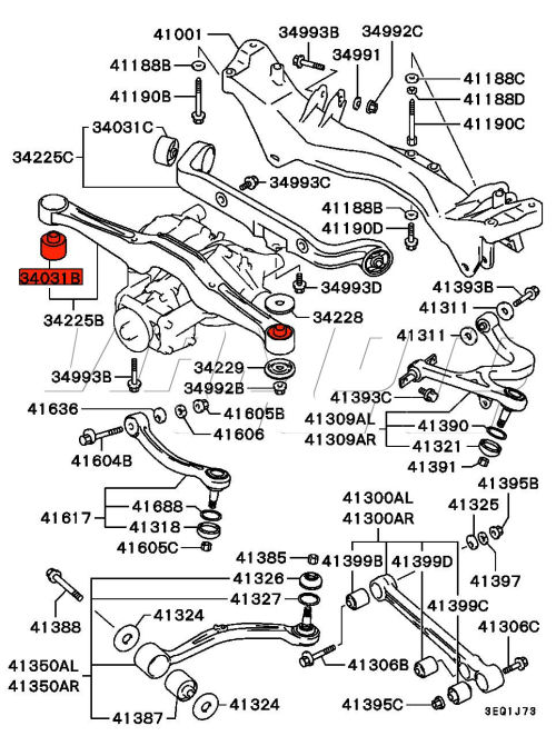 Rear Differential Mount - Front - Mitsubishi Evolution IV CN9A This bush is fitted on the front section of the differential mount. Exploded Diagram showing location fitted HERE Mitsubishi Part Number MB844818