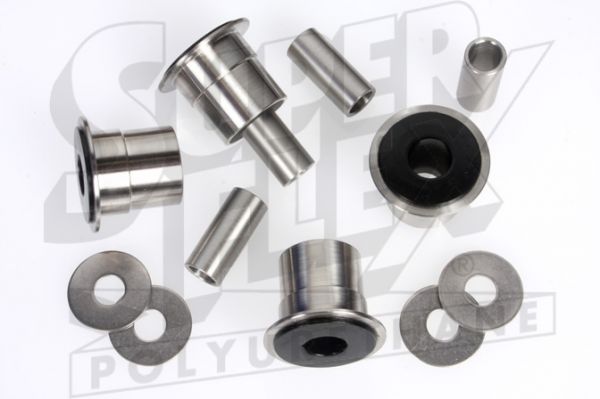 DeLorean Superflex - Front Upper Wishbone Kit of 4 Bonded Outer Stainless Steel Shell Bushes, 4 Stainless Steel Tubes & 4 Stainless Steel Washers Superflex Part Number = SF111-0003KSS Why SuperFlex ?