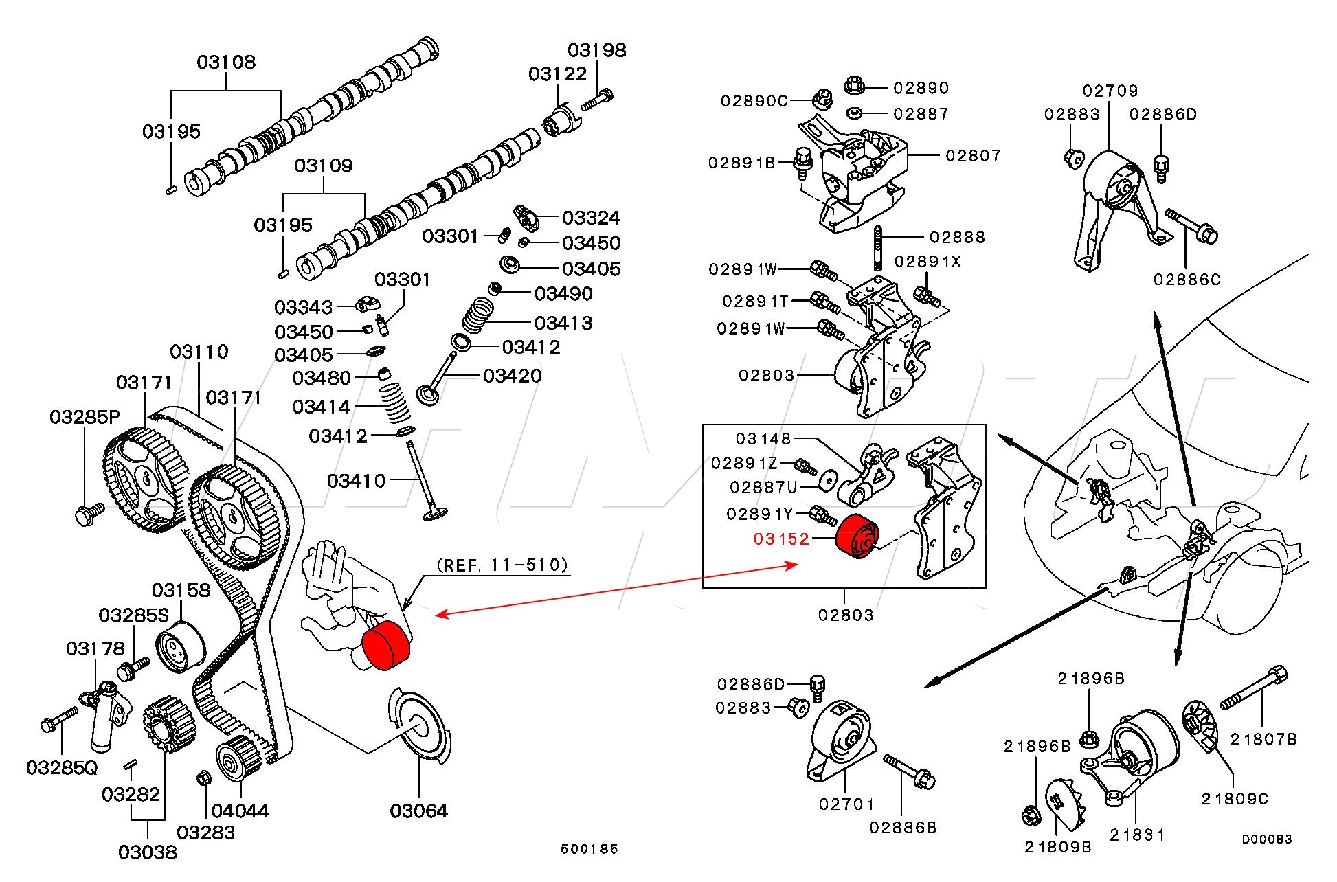 Upper Cambelt Idler Bearing Pulley - Mitsubishi Airtrek 2.0 Turbo-R 4WD CU2W 4G63T Koyo, NTN or NSK OEM suppliers The one attached to engine mount bracket See HERE Mitsubishi Part Number MD156604