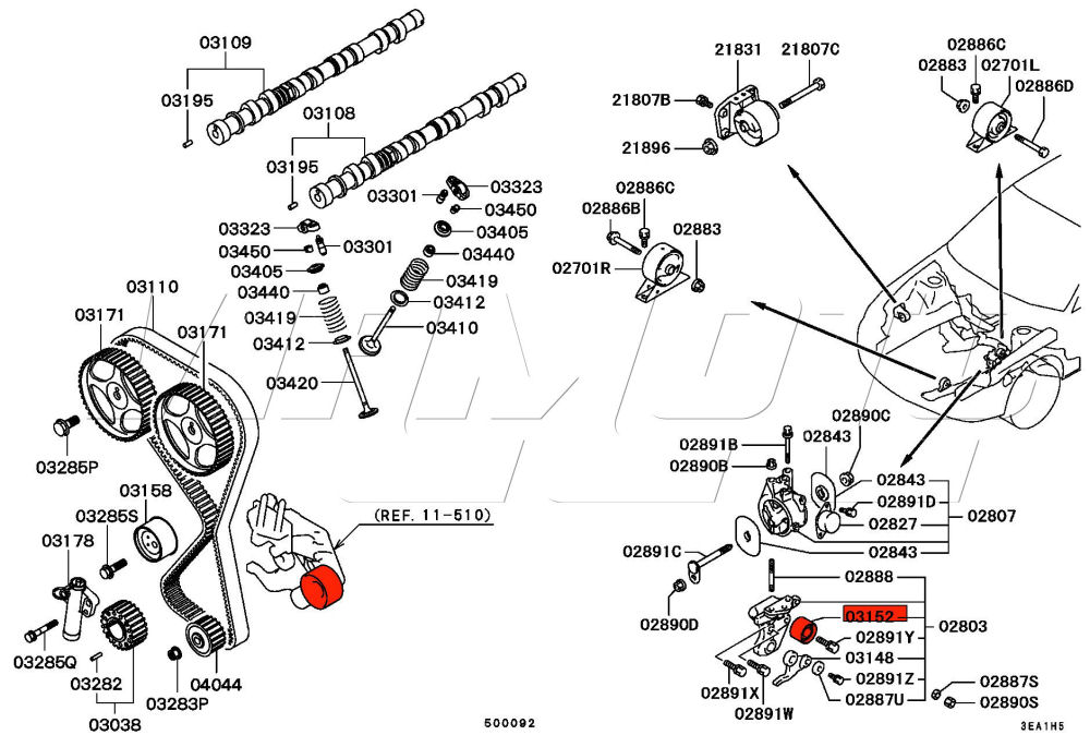 Upper Cambelt Timing Belt Idler Bearing Pulley - Mitsubishi Lancer Evolution I CD9A Koyo, NTN or NSK OEM suppliers The one attached to engine mount bracket See HERE Mitsubishi Part Number MD156604