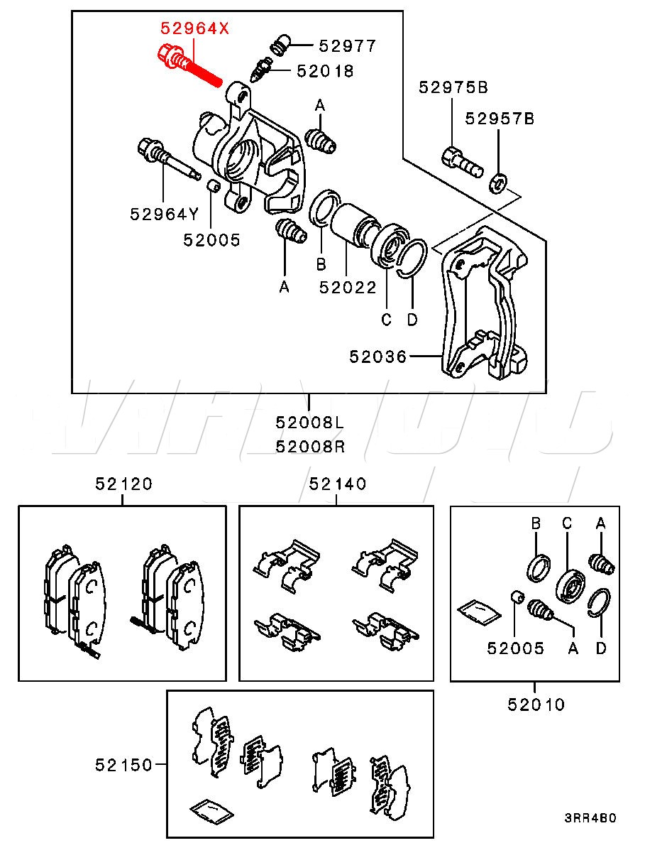 Rebuild Kit for Rear Single Piston Brake Caliper - Mitsubishi 3000GT/GTO Complete Rear Caliper Seal Kit - All the seals required to Rebuild the Single Piston Rear Caliper. Exploded Diagram HERE Mitsubishi Part Number MB857612 MB950202 now 4605B985