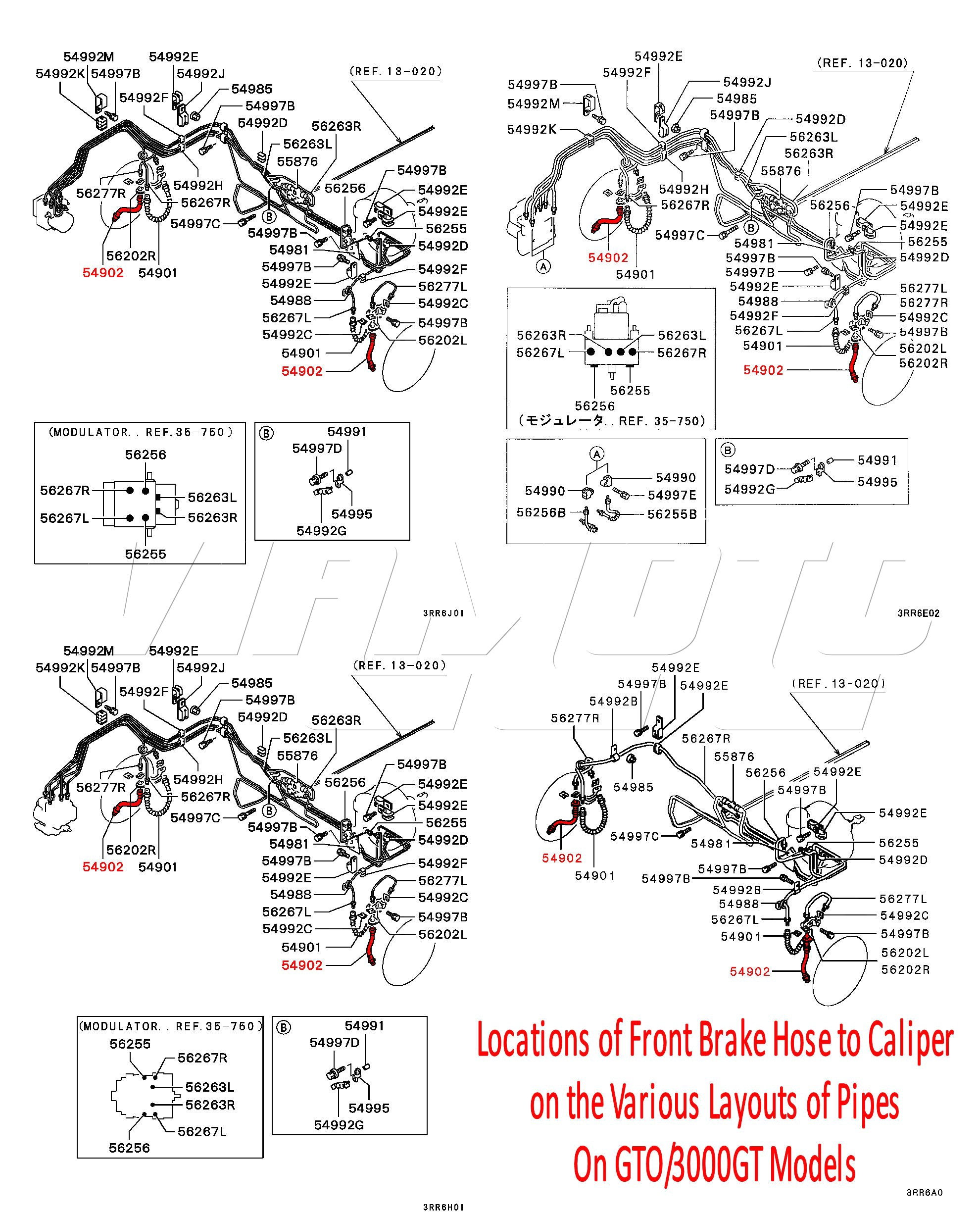 Front Brake Hose to Caliper - GTO/3000GT Same hose fitted to all models.