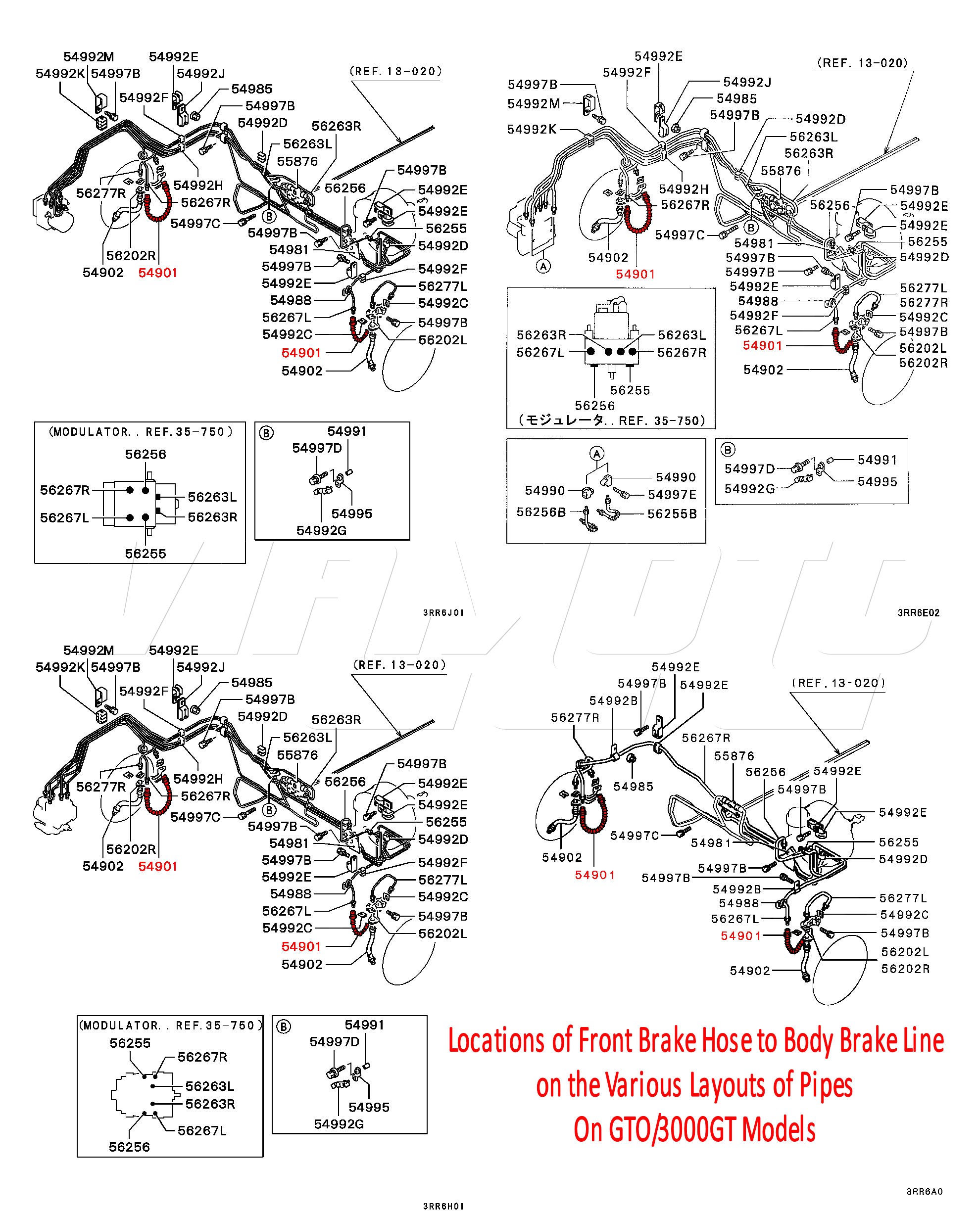 Front Brake Hose to Body Brake Line - GTO/3000GT Same hose fitted to all models.