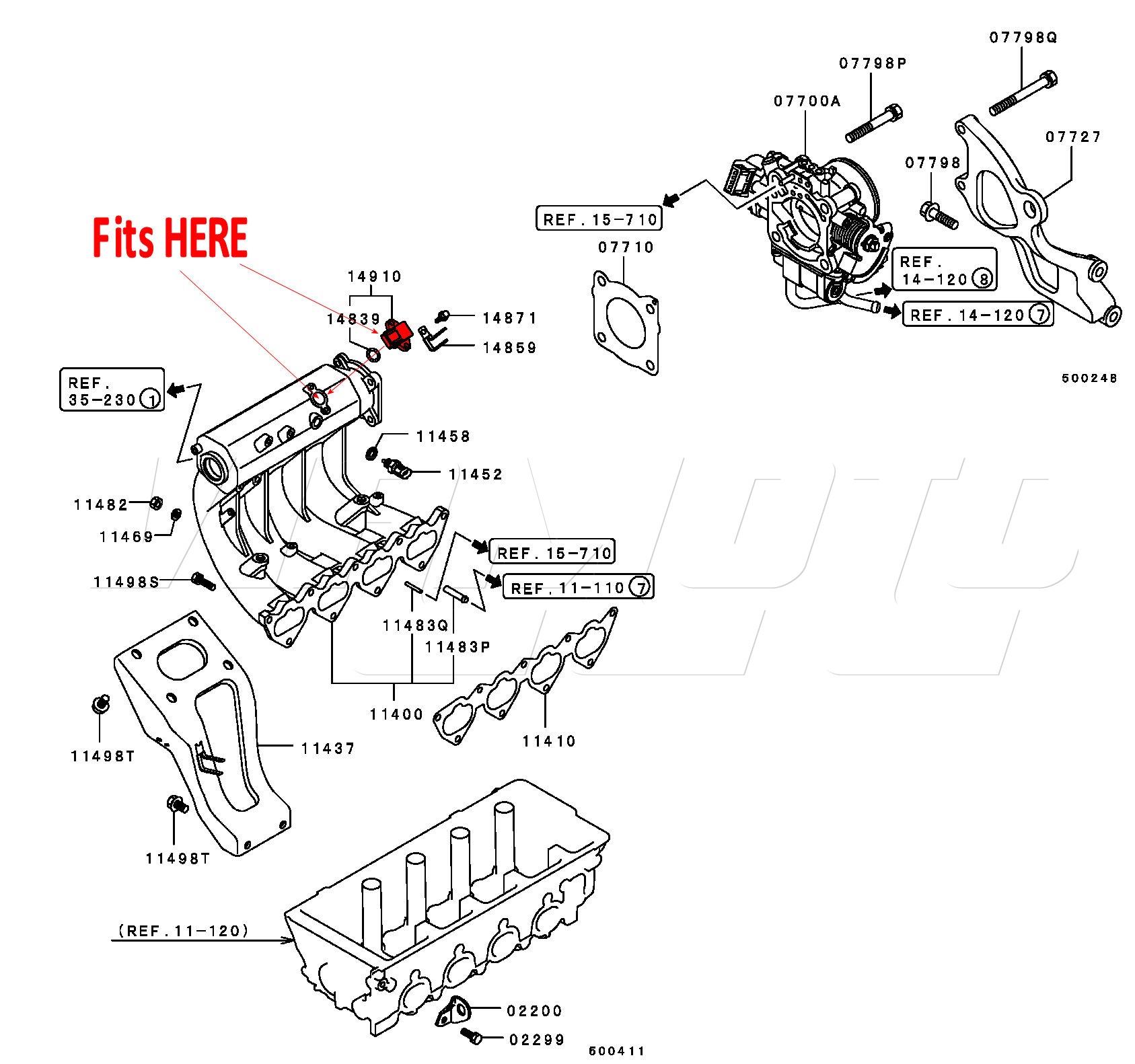 Surge Tank Air Temperature Sensor also called Air Intake Temperature Sensor for Mitsubishi Colt Mirage Cyborg 1.6 Mivec CJ4A A faulty one can cause emissions problems. Should show up on engine fault code read. How to Check it HERE Exploded Diagram HERE Mitsubishi Part Number MD326170
