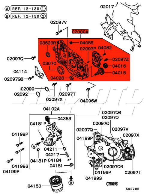 Oil Pump - Mitsubishi Lancer Evolution 5 6 CP9A Oil pump or Case Assembly Cylinder Block as Mitsubishi call it Not a cheap part but if you need one you need one ! Exploded Diagram HERE Mitsubishi Part Number MD366260 MD322509