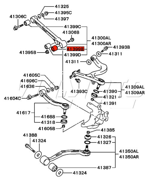 Rear Lefthand Upper Suspension Arm - Mitsubishi Lancer Evolution 7 8 CT9A Exploded Diagram HERE Mitsubishi Part Number MB856435 MR954167 4110A047 4110A079