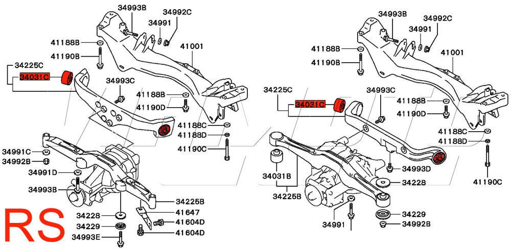 Front Bottom Arm Rear Bush - Mitsubishi Lancer Evolution 7 8 CT9A Exploded Diagram Showing Location HERE Mitsubishi Part Number MR519675