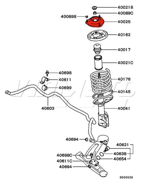 Rear Upper Metal Top Mount - Mitsubishi Lancer EVO 7 8 9 CT9A CT9W Rear upper mount only - Can and does rust and can require replacing. Exploded Diagram HERE Mitsubishi Part Number MB910847 MN100048 4140A513 MR171927