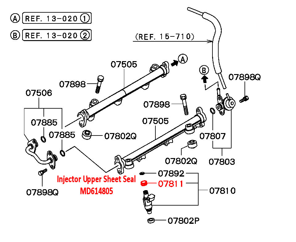 Upper Injector Sheet Seal - Mitsubishi FTO V6 - DE3A Fits ALL V6 FTO's Exploded Diagram Showing Location HERE Mitsubishi Part Number MD614805 MD620788