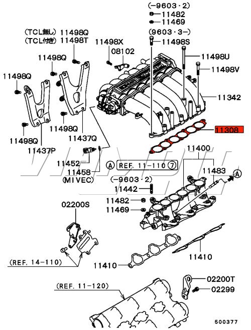 Inlet manifold gasket for Mitsubishi FTO 2.0 V6 DE3A This gasket seals between centre triangle block and the inlet plenum See Exploded Diagram HERE You may need this when replacing rear spark plugs but probably not as the gasket is metal and as long as your careful. Mitsubishi Part Number MD175776
