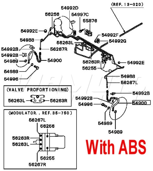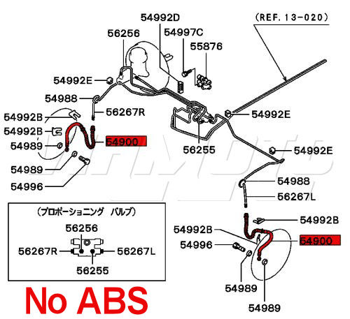 Front brake hose. Common MOT failure. 262mm+220mm = 482mm To see exploded diagrams Click HERE without ABS Click HERE with ABS Mitsubishi Part Number MR129883