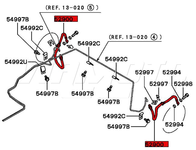 Rear brake hose - Mitsubishi FTO - All Models Common MOT failure. 217mm+210mm = 427mm To see exploded diagram Click HERE Mitsubishi Part Number MR129802