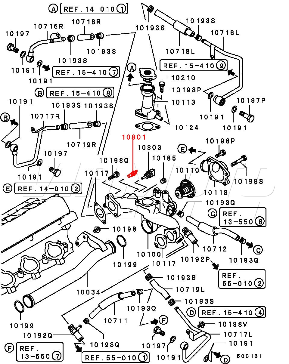 Engine Coolant Temperature Sender - Mitsubishi GTO/3000GT 10/1992 onwards also called ECU Temp Sensor. This item can cause emissions problems if faulty. Check your old one using this guide HERE. THIS IMAGE shows location of this item Mitsubishi Part Numbers MD177572 MD182467 1308A012