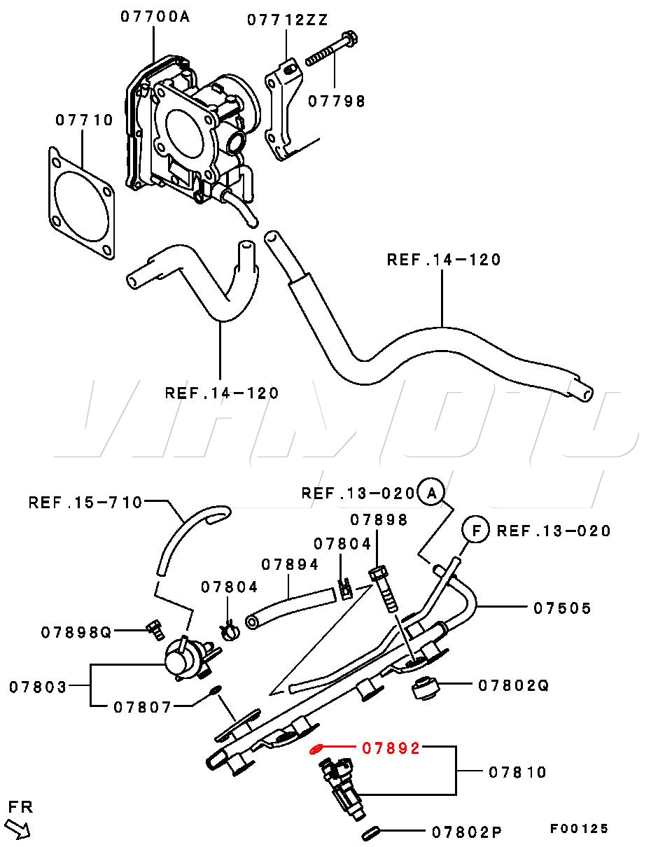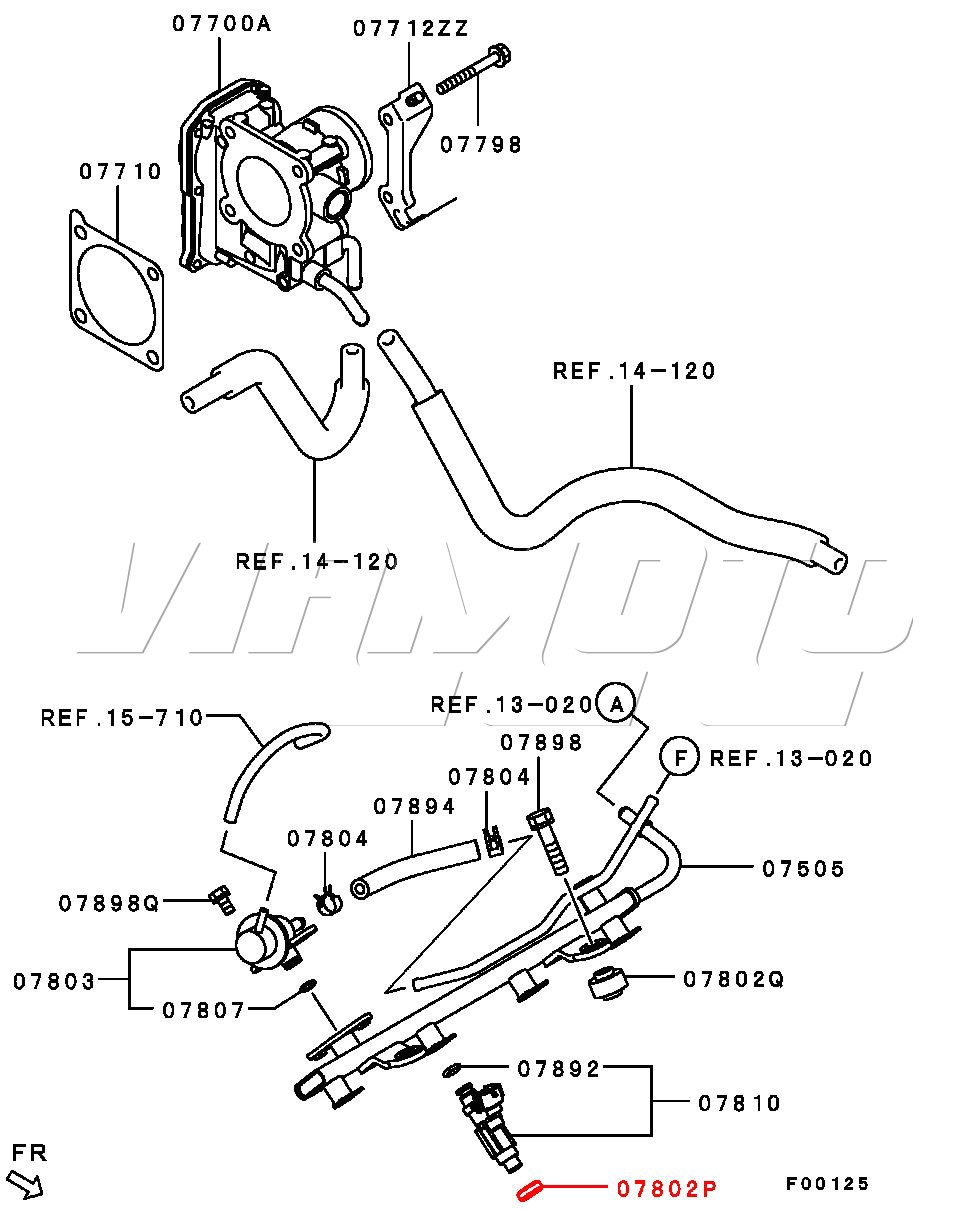 Upper Injector O-Ring - Mitsubishi Colt CZT Z37A Exploded Diagram Showing Location Fitted HERE Mitsubishi Part Number 1465A188 was MD614813 also MD614803 MD620787