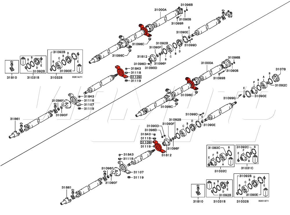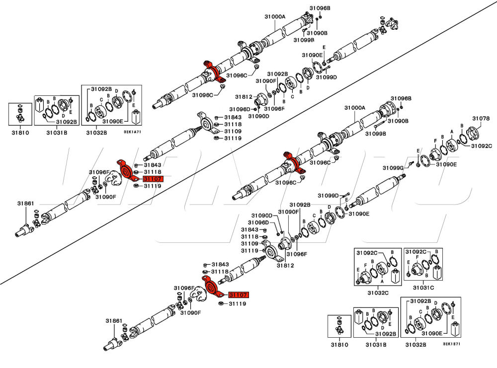 Rear Propshaft Bearing - Mitsubishi Lancer Evolution 5 6 CP9A When failing it causes knocking and possibly shaking. Exploded Diagram HERE Mitsubishi Part Number MR263140
