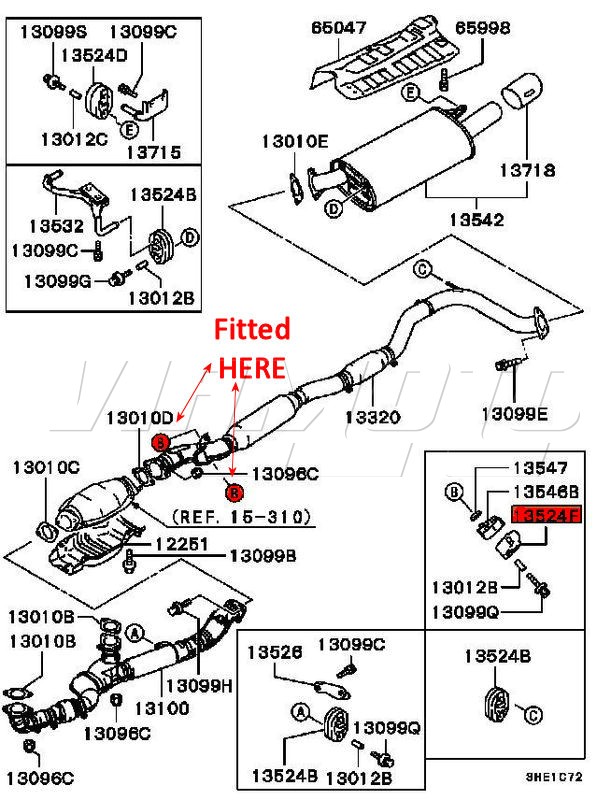 Exhaust Rubber Mount - Middle Section Behind Cat - Legnum/Galant VR4 EC5W EC5A TWO of these used, one in each location on diagram (Sold in Singles) See larger exploded Diagram of Location HERE Mitsubishi Part Number MB611935